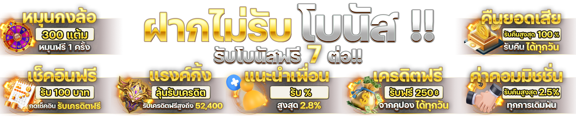 พิเศษสุดสำหรับสมาชิกใหม่ทุกท่าน รับโบนัสต้อนรับสูงถึง 100% ของยอดฝากครั้งแรก เช่น ถ้าคุณฝากเงิน 1,000 บาท จะได้รับโบนัสเพิ่มอีก 1,000 บาท รวมเป็น 2,000 บาทเลยทีเดียว นอกจากนี้ยังมีโปรโมชั่นพิเศษอื่นๆ อีกมากมายที่หมุนเวียนมาให้สมาชิกได้รับตลอดทั้งปี