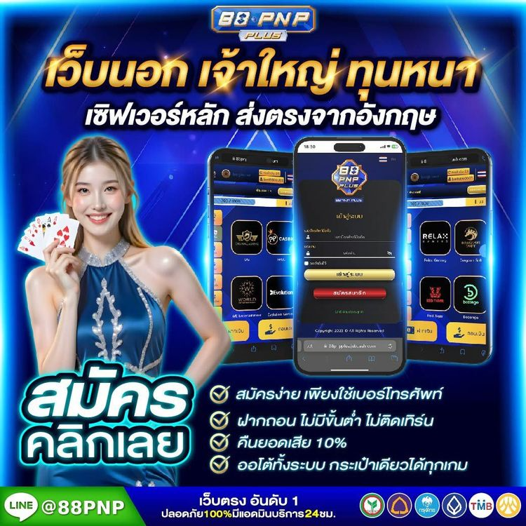 88pnpplus เป็นเว็บไซต์พนันออนไลน์ที่ให้บริการเกมพนันหลากหลายรูปแบบ ไม่ว่าจะเป็นคาสิโนสด สล็อต กีฬา และเกมไพ่ต่างๆ มาพร้อมระบบฝาก-ถอนอัตโนมัติที่รวดเร็วตลอด 24 ชั่วโมง รองรับการเล่นผ่านทั้งคอมพิวเตอร์และมือถือ